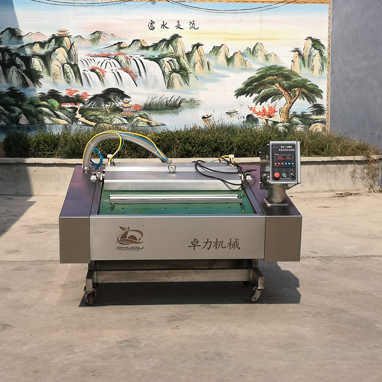 滾動(dòng)真空包裝機(jī)的真空體系、熱封道理與雙室室真空包裝機(jī)相同,但滾動(dòng)式真空蓋的打開和閉合無需人工操縱,可自動(dòng)開閉,因此制作效率更高。只要將盛有包裝物品的包裝袋排放在運(yùn)送帶上,便可自動(dòng)完畢真空包裝工作,并自動(dòng)卸料到流水線傳送帶或成型物品箱內(nèi)。食物包裝機(jī)重點(diǎn)用于食物的包裝。